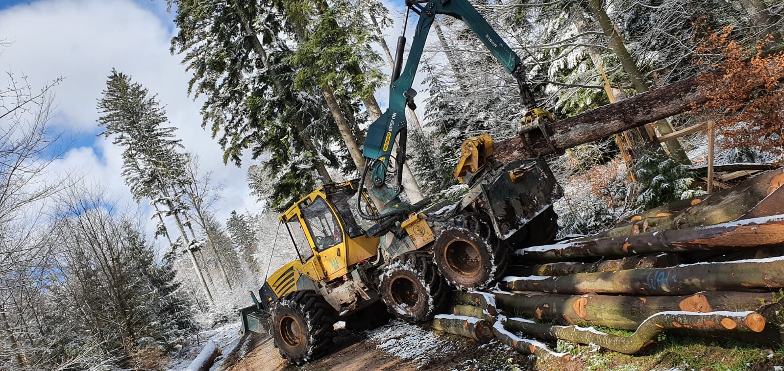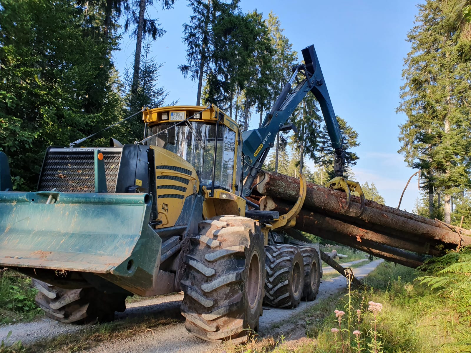 Von dort werden Sie durch ein Fuhrunternehmen auf Lagerplätze oder ins Sägewerk abtransportiert.